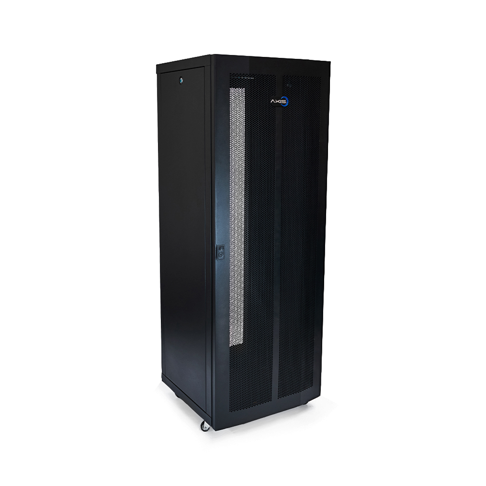 ■ Puerta frontal perforada total según norma EIA /TIA 942 y desmontable, cerradura push con llave, cierre de un punto, tapa posterior perforada total y desmontable, con cerradura de seguridad